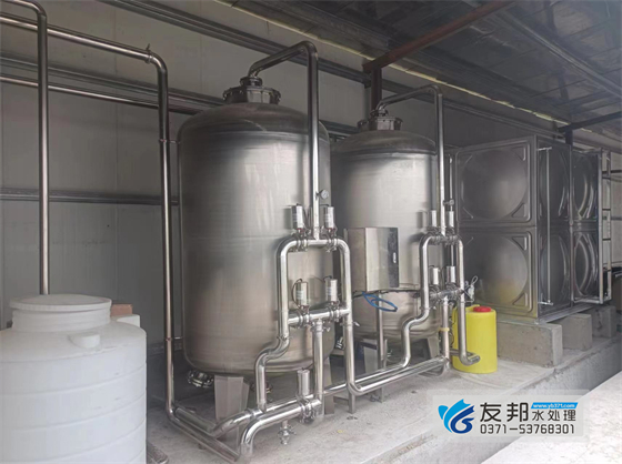 利用離子樹脂的交換性能,除去原水中的鈣鎂離子,以達到防止后繼設(shè)備結(jié)生水垢的影響,但是操作起來費工,費料?,F(xiàn)在改為加藥系統(tǒng)直接向里添加阻垢劑。