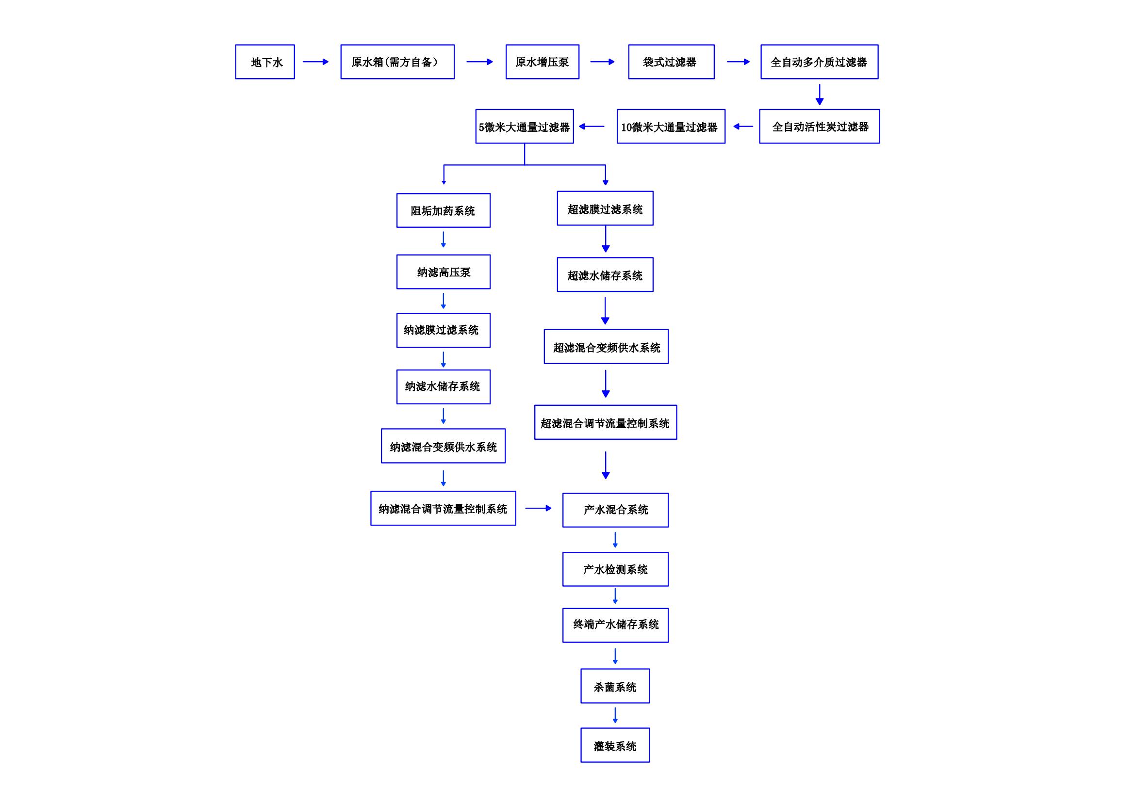 增壓泵用來提升系統(tǒng)供水壓力;多介質(zhì)過濾器可清除水中的懸浮物、雜質(zhì)等;活性炭過濾器可清除水中余氯、異味物質(zhì)和異味氣體,改善口感;精密過濾器進(jìn)一步去除水中雜質(zhì),納濾原件可將水中雜質(zhì)、膠體、酚類化合物、氯化物、細(xì)菌等各種有害物質(zhì)清除掉,并將水中有益的各類礦物質(zhì)保留在水中。
