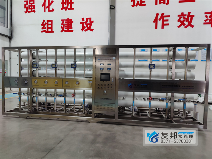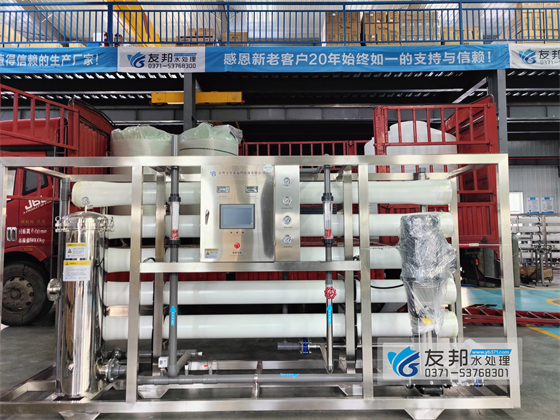 此套水處理設備配置是一套10噸單級反滲透系統(tǒng),用于鹽酸生產用水。感謝湖北潛江客戶選擇與鄭州友邦合作!鄭州友邦創(chuàng)始于2003年,超長保修,終身維護!1、純凈水設備采用反滲透膜,脫鹽