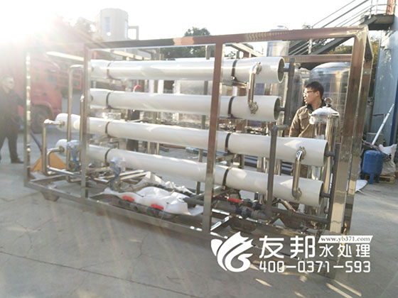 此套水處理設備配置是一套10噸單級反滲透系統(tǒng),用于鹽酸生產用水。感謝湖北潛江客戶選擇與鄭州友邦合作!鄭州友邦創(chuàng)始于2003年,超長保修,終身維護!1、純凈水設備采用反滲透膜,脫鹽